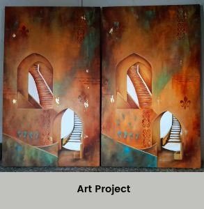 She loves to experiment sculpture/painting/Design in different mediums in origami style with the sharp edges of geomatical forms. Most of her artworks remain Inspired by human relations and nature in bright colors, bold lines & texture depicts her strong values and passion for Nature and its connect with different elements of society.